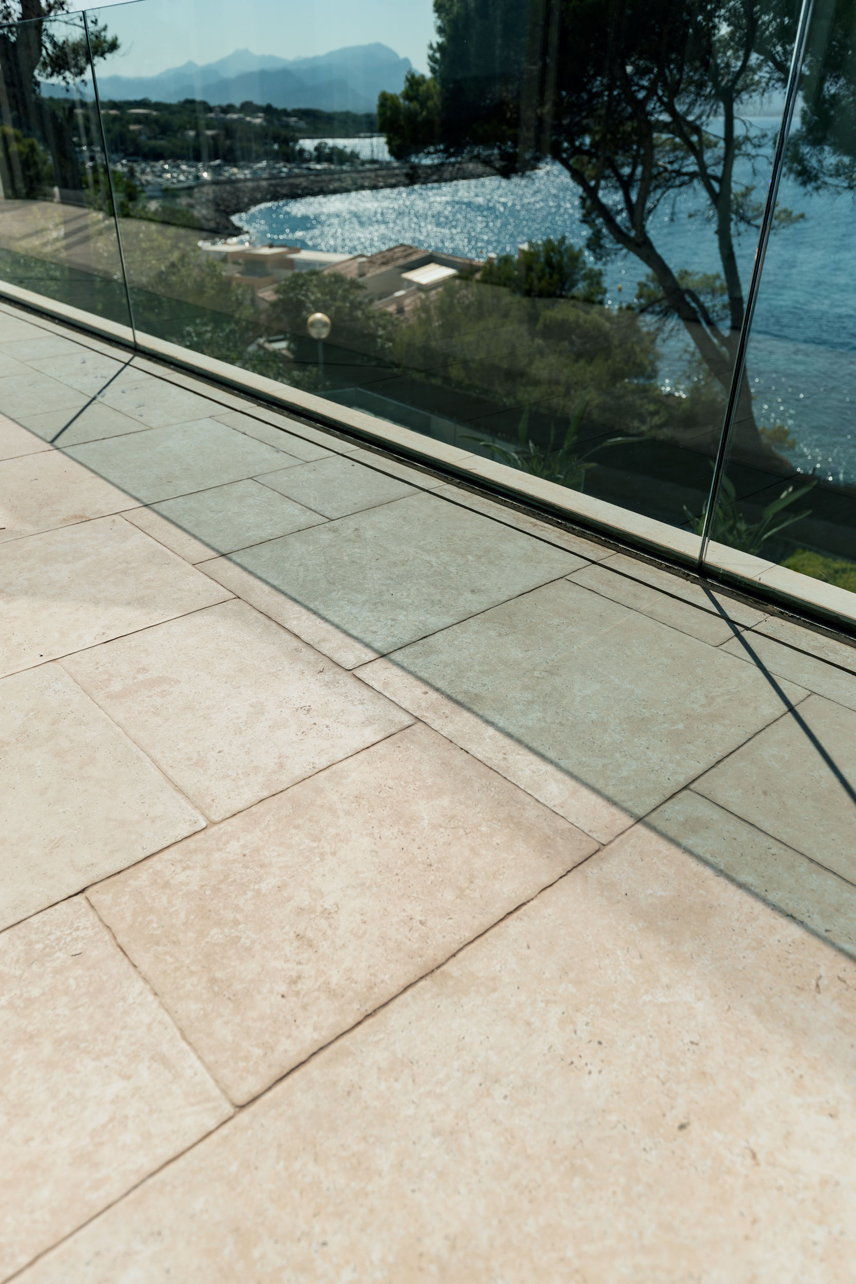 The terrace is the vibrant core of the home, an ideal place to unwind and enjoy memorable moments with friends and family. Here, the choice of flooring plays a crucial role not only aesthetically, but also in terms of safety. For this reason, the Grip finish of the Timestone porcelain stoneware collection by Cerdisa was selected in Beige. With an R11C slip-resistance rating, the surface ensures secure footing even in wet areas such as poolside spaces, providing reliability in every circumstance.
