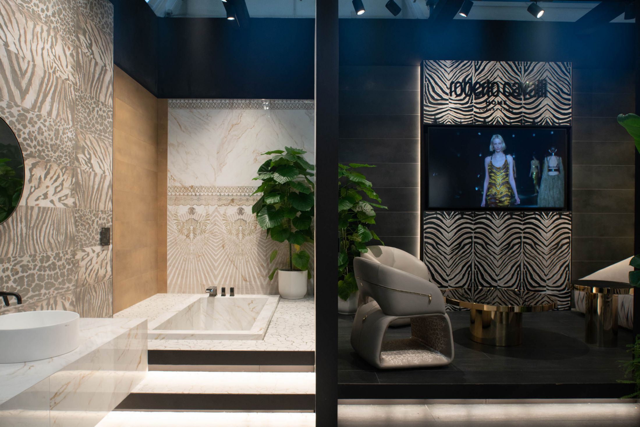 During Cersaie 2022 visitors were welcomed to the exclusive The Wild Spirit Lounge: a space designed to encapsulate all the creativity, craftsmanship, richness of materials and workmanship, and distinctive luxury that distinguishes the Roberto Cavalli Home Luxury Tiles brand, fully embracing the bold and biting style that has always been a symbol, and today even more so, of the Cavalli maison.