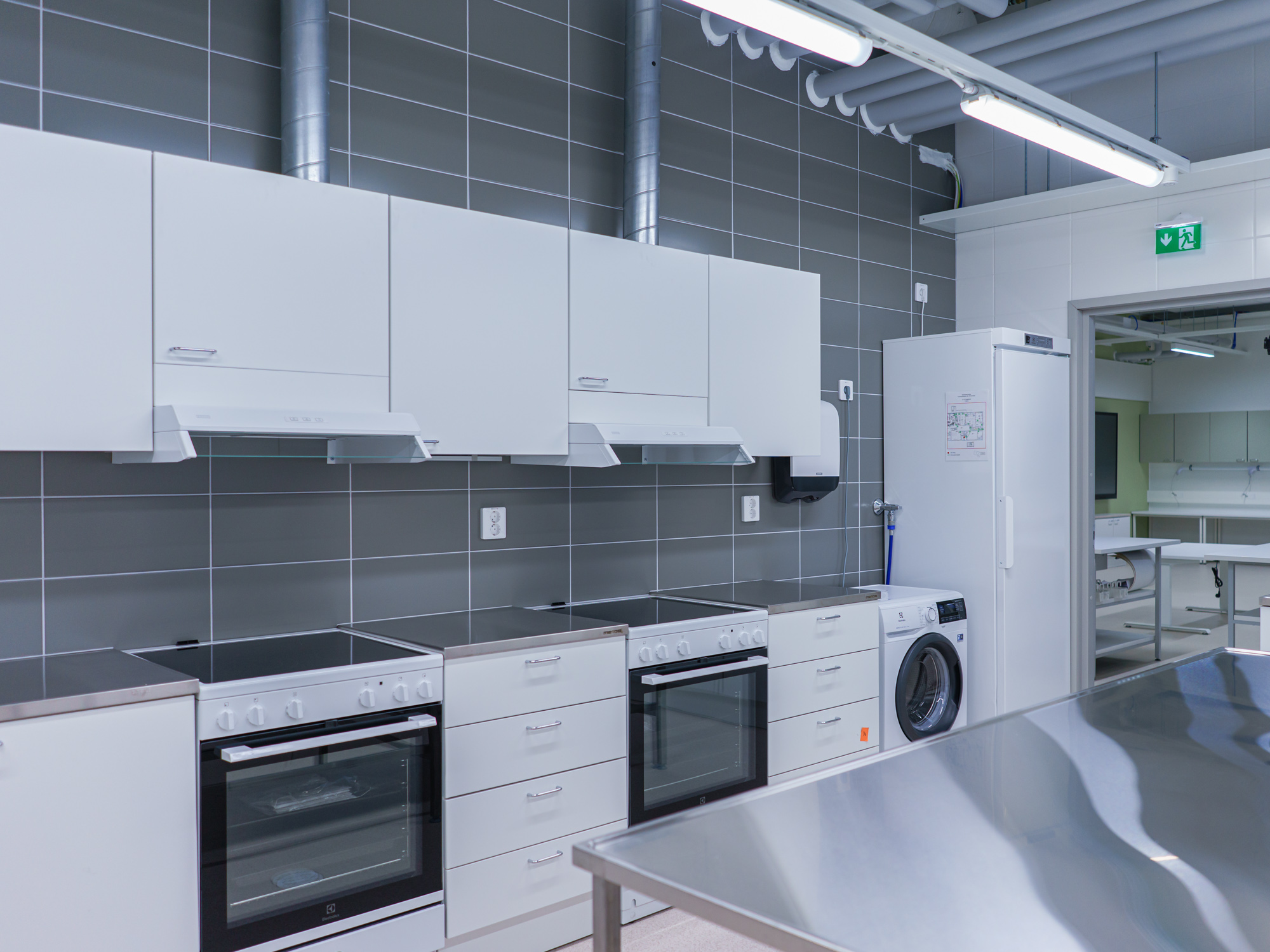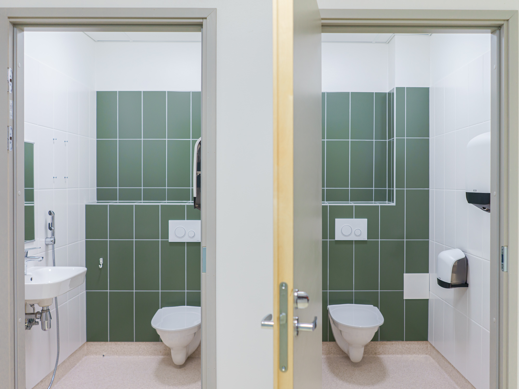 In the project carried out for the Emäkoski Middle School, stoneware is located in the service areas, such as bathrooms and changing rooms, in the areas dedicated to the canteen, kitchens and common rooms, and in the classroom-laboratories; it seems almost a purely functional element linked to the hygiene of the environments, but here is where design comes into play: the wide availability of formats and colours of Cinca stoneware allows each individual environment to be characterised with very different colours: yellows, reds, greens, different shades of grey.