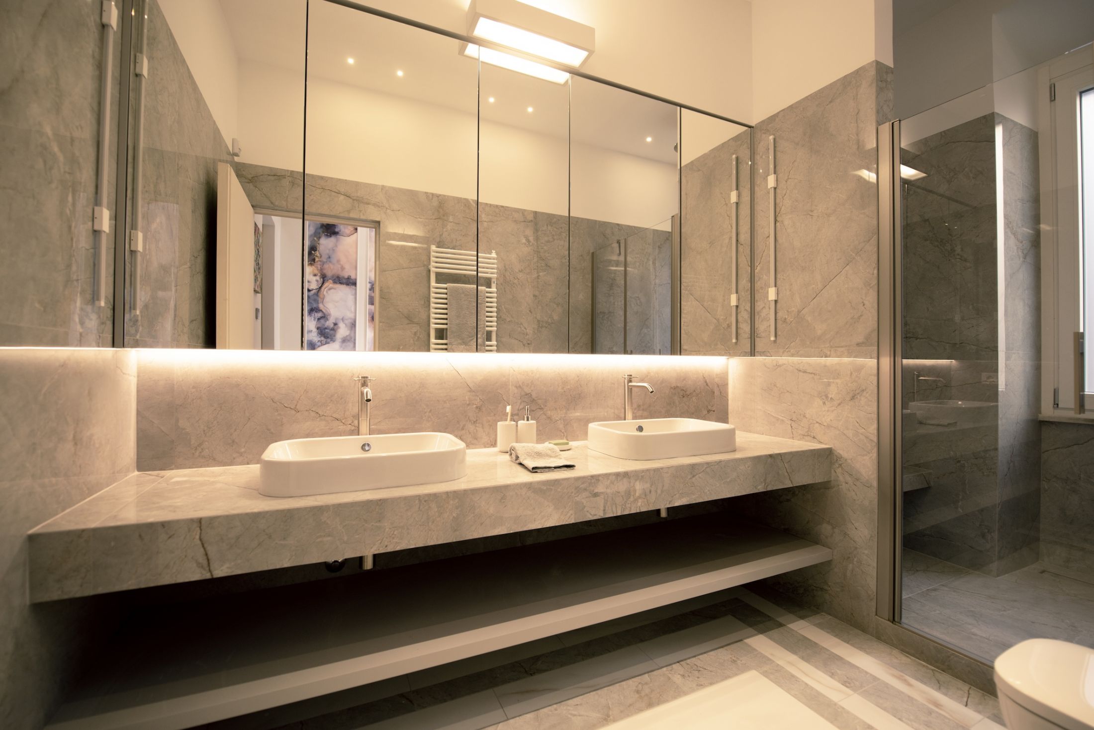 While in the secondary bathroom, the Oxford Grey colour gives an aura of classicism and simplicity, while maintaining an unmistakable style.
