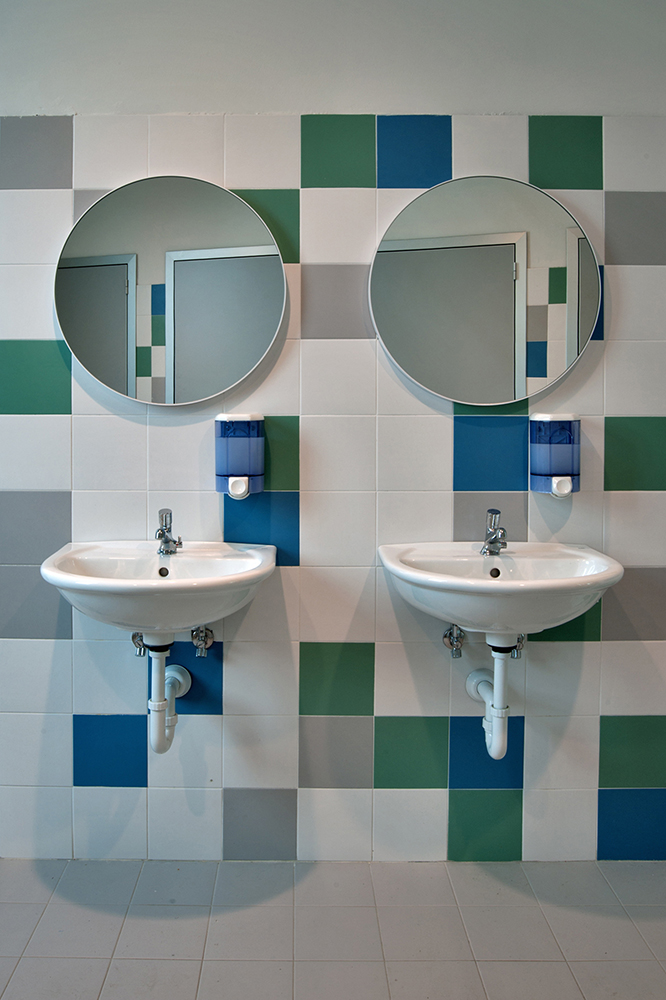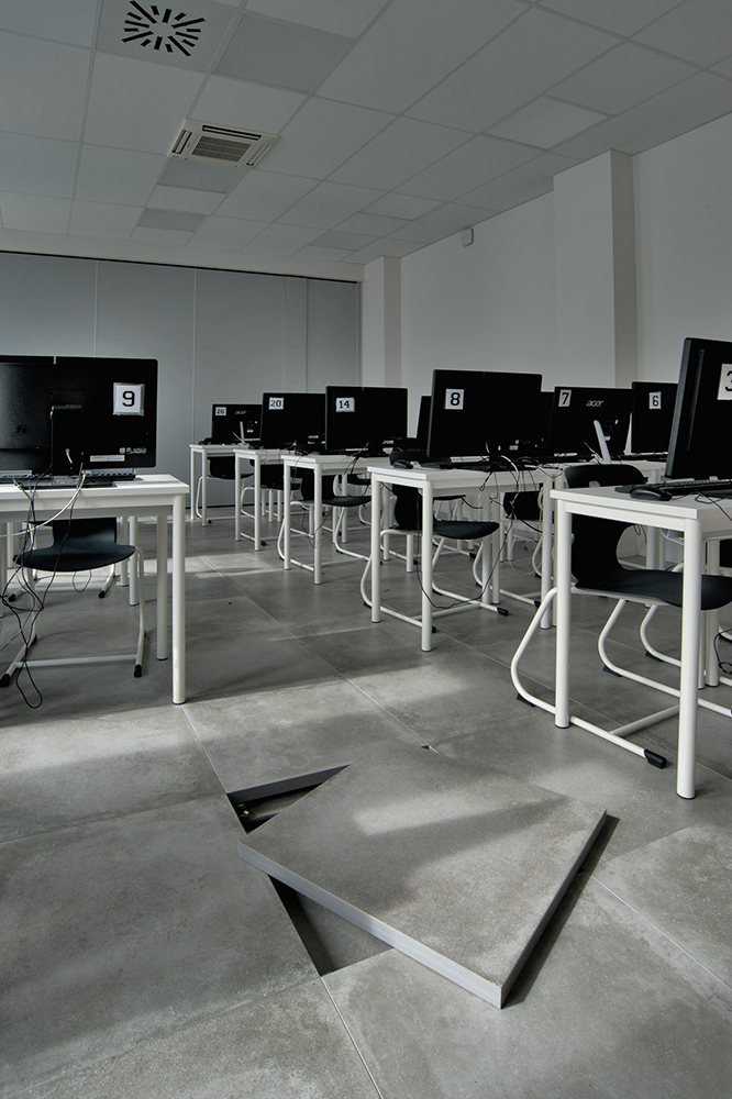 Ceramic floors were chosen where durability and resistance had become necessary features: the system floor with traditional gluing on screed is used for the scientific subjects laboratories, while for the computer classrooms a raised system is preferred, always with the said ceramic surface Reden, in the colour Grey. The services, bathrooms and changing rooms are covered with Cinca Nova Arquitectura stoneware elements in 20x20 format with the purpose of enriching, with a play of colours, the environments and making the various functions recognisable.