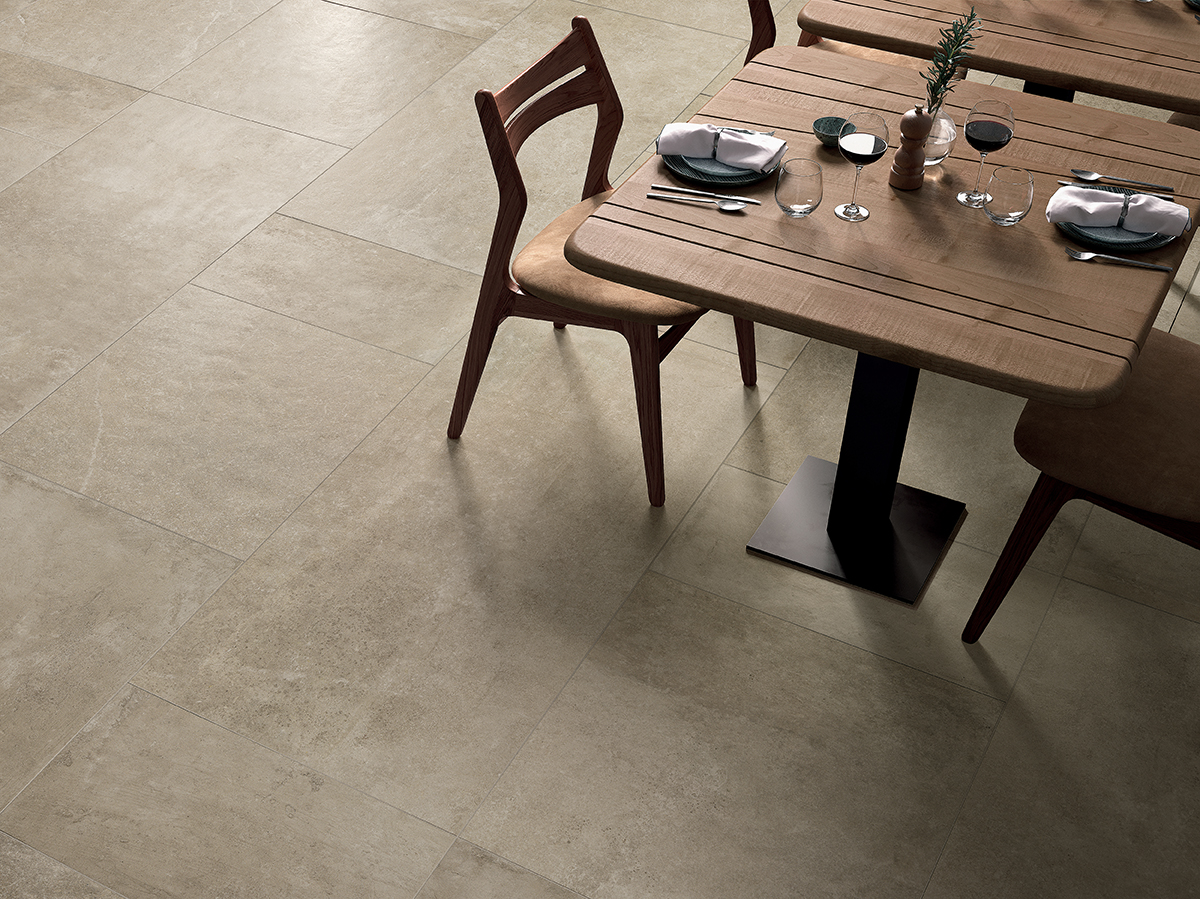 The Stonemix collection features chromatic modulation that re-creates the authentic variety within the natural stone. Stone-effect surfaces with shade variation, rediscovering the colours and mineral look of a tough, hard-wearing material.