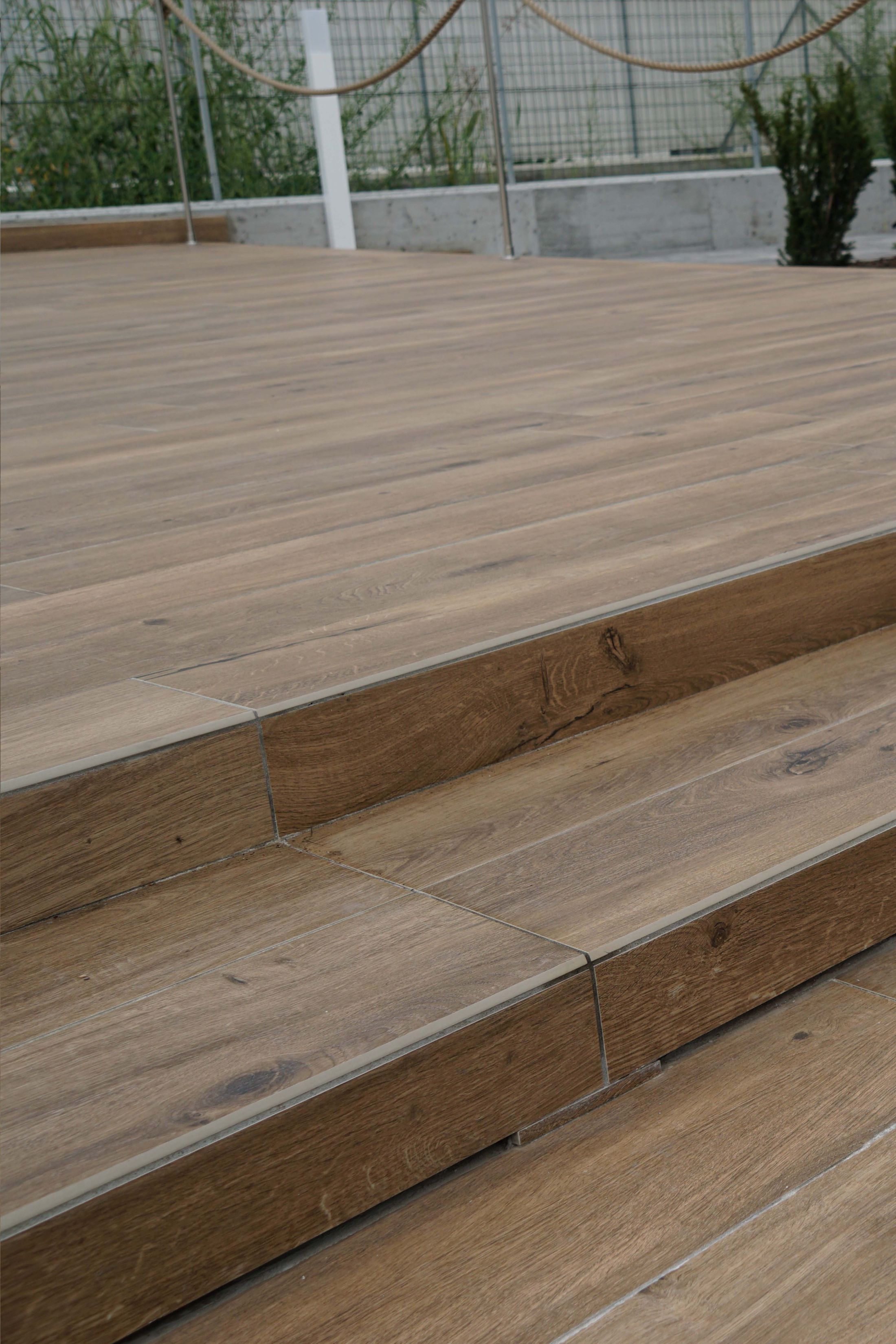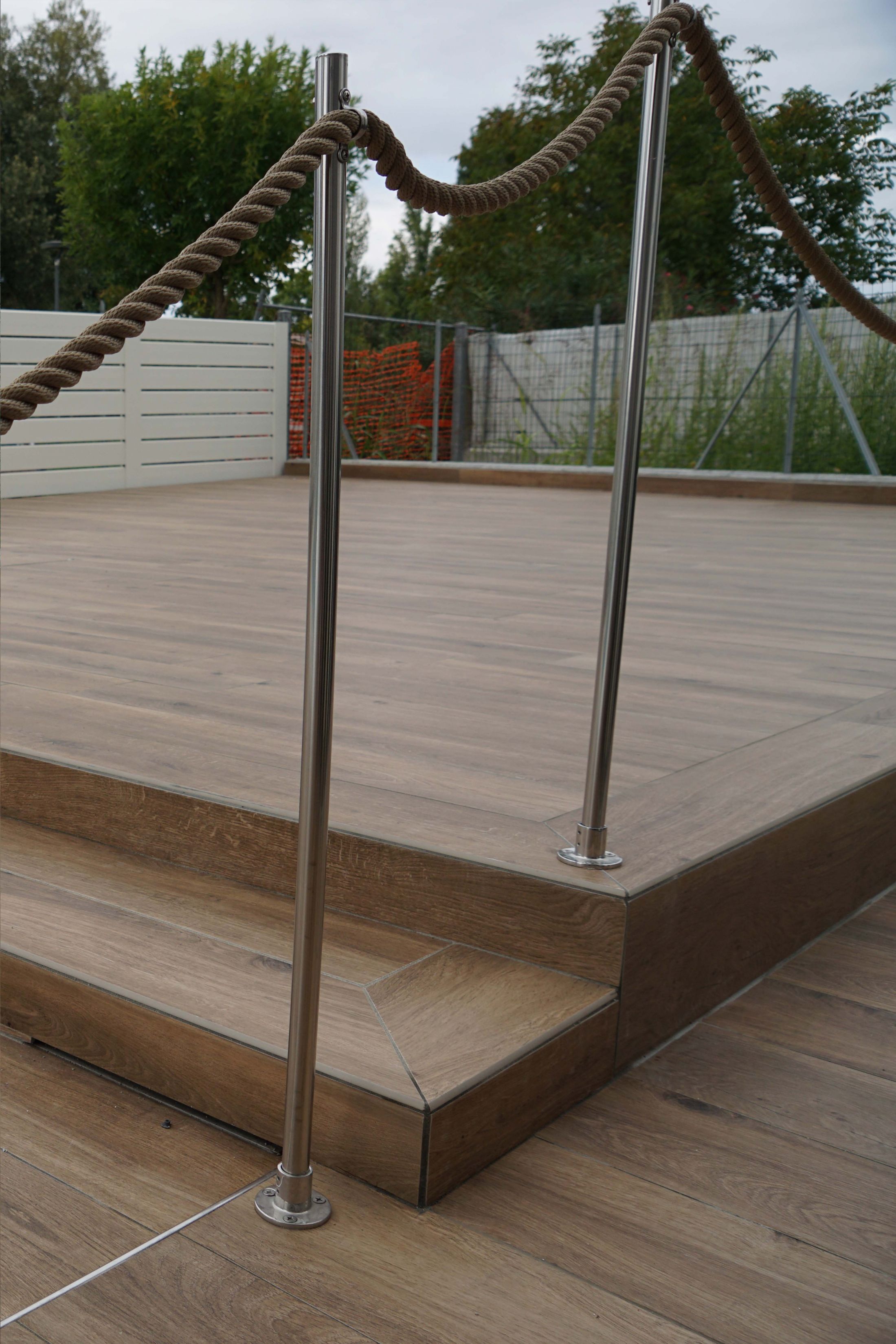 L’area pool, su cui affacciano alcuni appartamenti, è divisa in zone: solarium, docce e piscina. La serie Megeve di Cerdisa, nel caldo color rovere, con i suoi bordi arrotondati e i suoi effetti realistici, combina la tradizione del legno con la praticità del gres di ultima generazione, con superficie antiscivolo grip R11. La zona piscina si distingue per l’utilizzo di Cerdisa Puntozero, nel chiarissimo color latte, per un insieme d’effetto: interno vasca, scale di accesso, sistemi di scolo con griglie customizzate, bordo vasca il tutto per un’immagine luminosa ed elegante.
