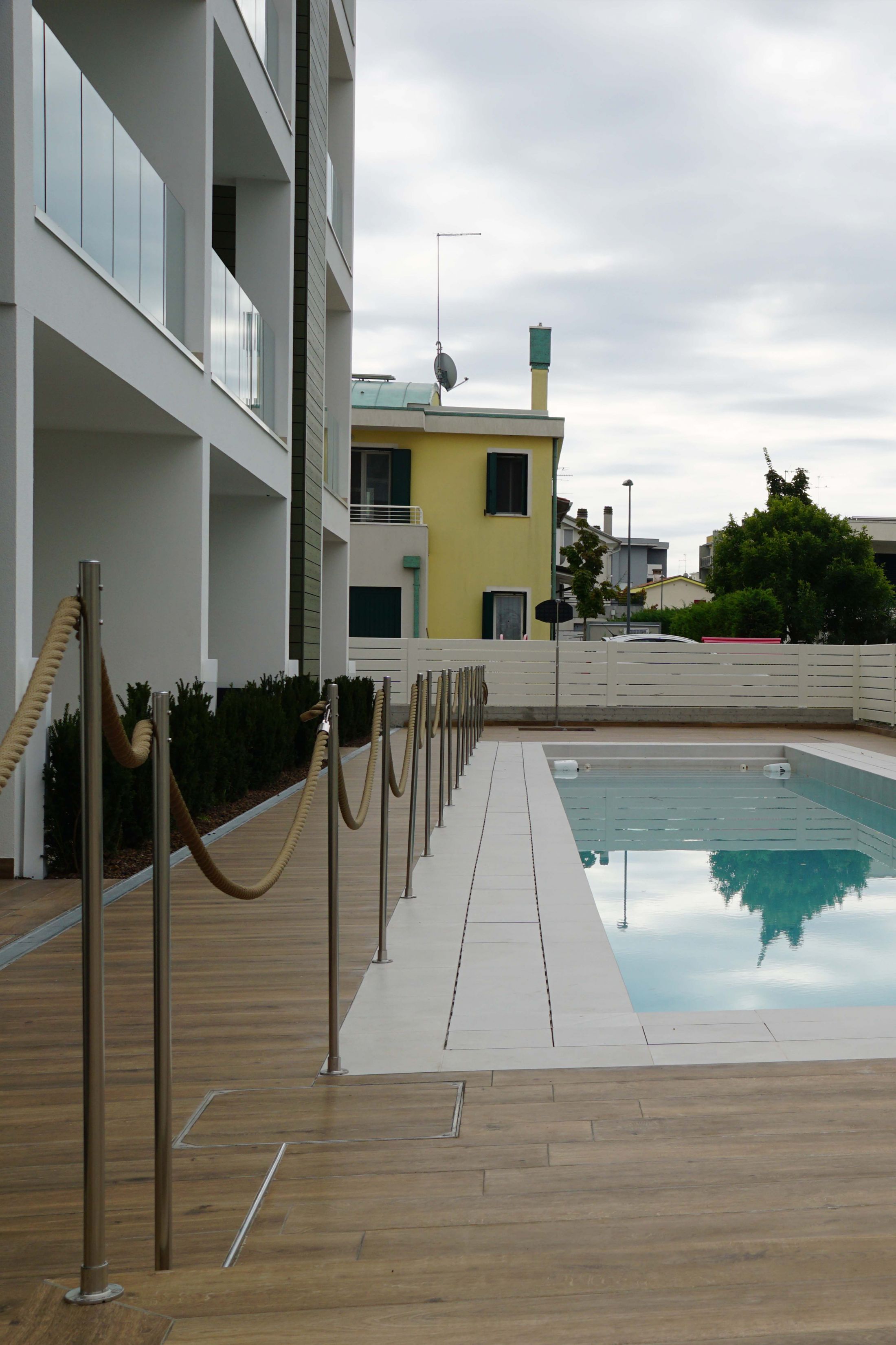 A Jesolo, capitale del divertimento estivo dell’alto Adriatico, ma nella tranquillità di una zona residenziale interna, le nuove residenze non possono prescindere dall’avere uno spazio piscina privato.
